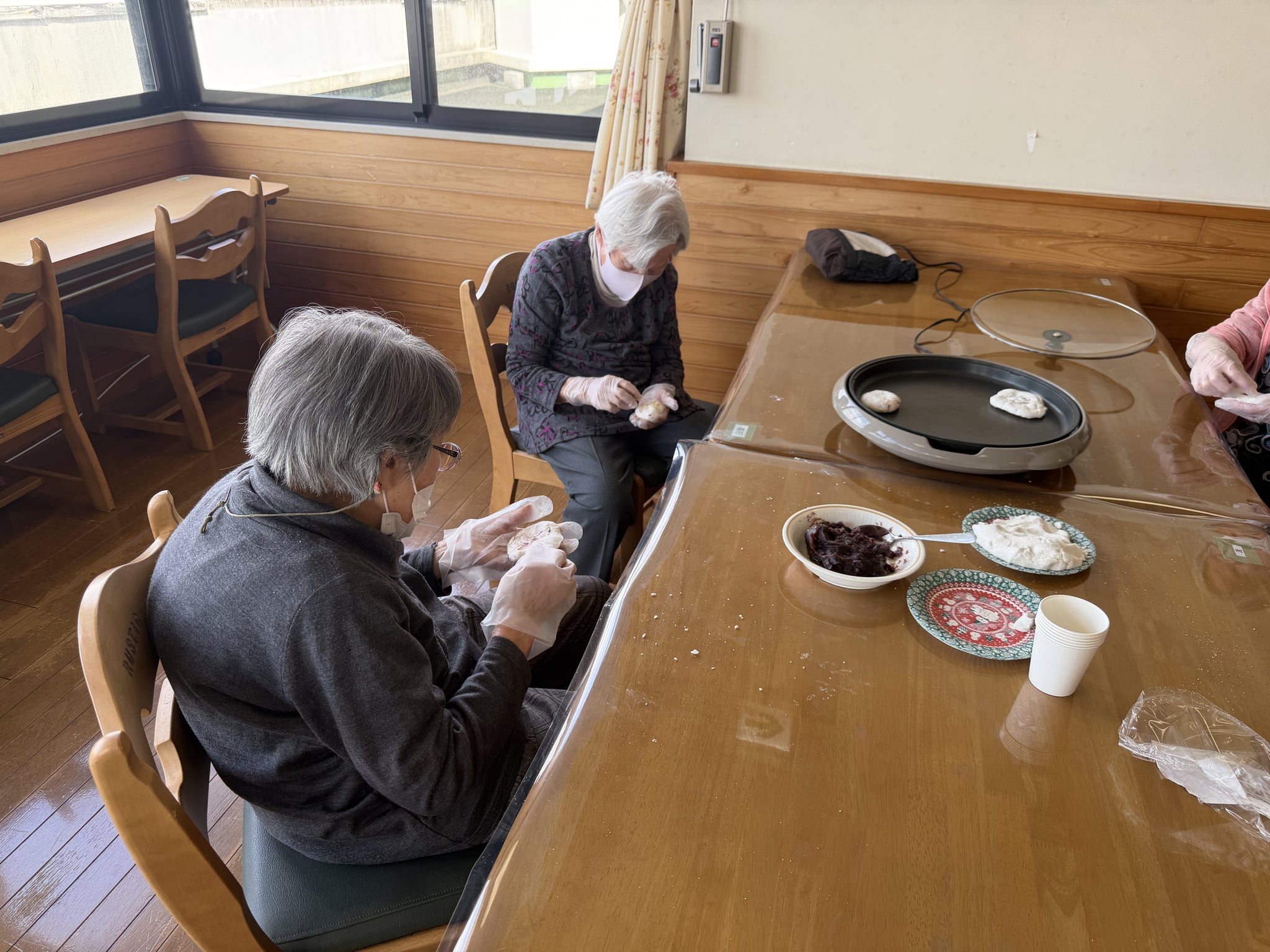 ケアハウス緑の里ホーム > ケアハウス緑の里ケアハウスからのお知らせ 一覧へ戻るケアハウス緑の里です。2026-02-26オススメチェック梅ヶ枝餅づくり 第2弾今日は梅ヶ枝餅づくり第2弾です。前回もおいしかったですが、今回は生地に変化を付けてさらに味がよくなりました。また、皆さんが楽しめる行事を企画していきます。